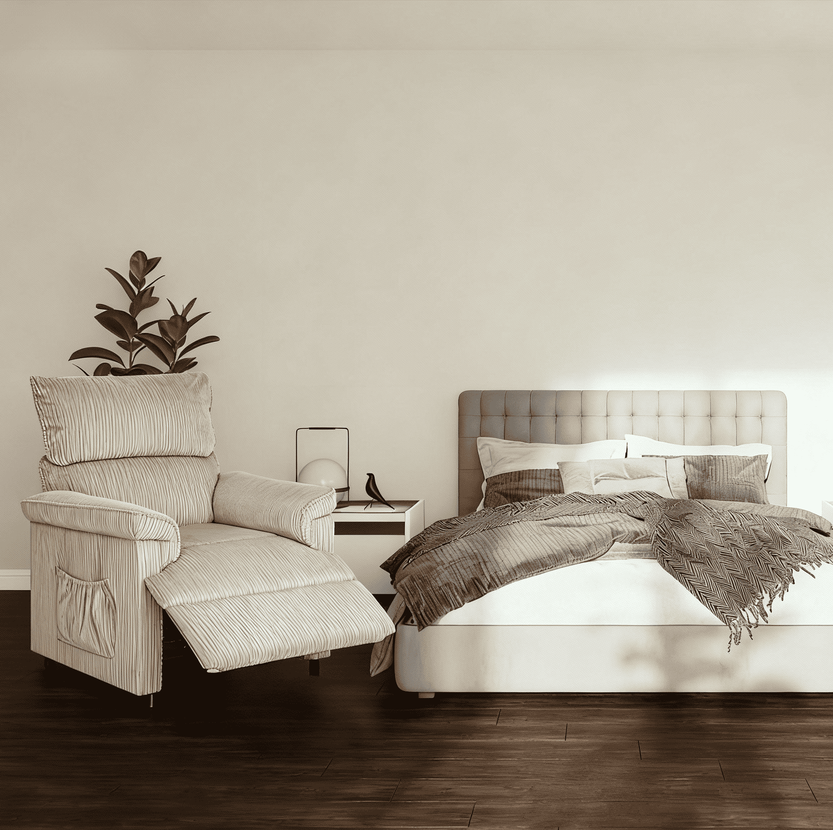 Small lamp. Soft heat. One chair that belongs only to you.