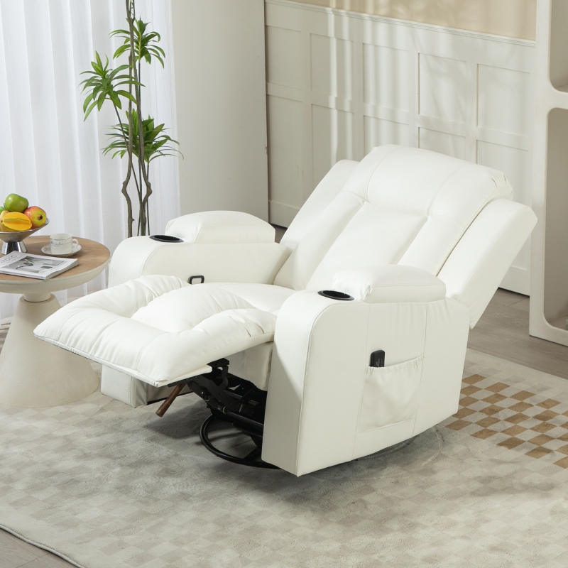 PU leather, footrest, remote control, cup holders for convenience.