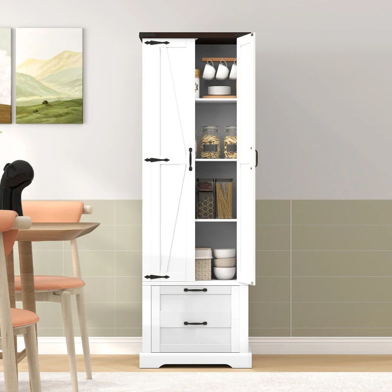HOMCOM 71" Tall Kitchen Pantry Cabinet, Farmhouse Kitchen Storage Cabinet with Soft-Close Drawer and Adjustable Shelves, White
