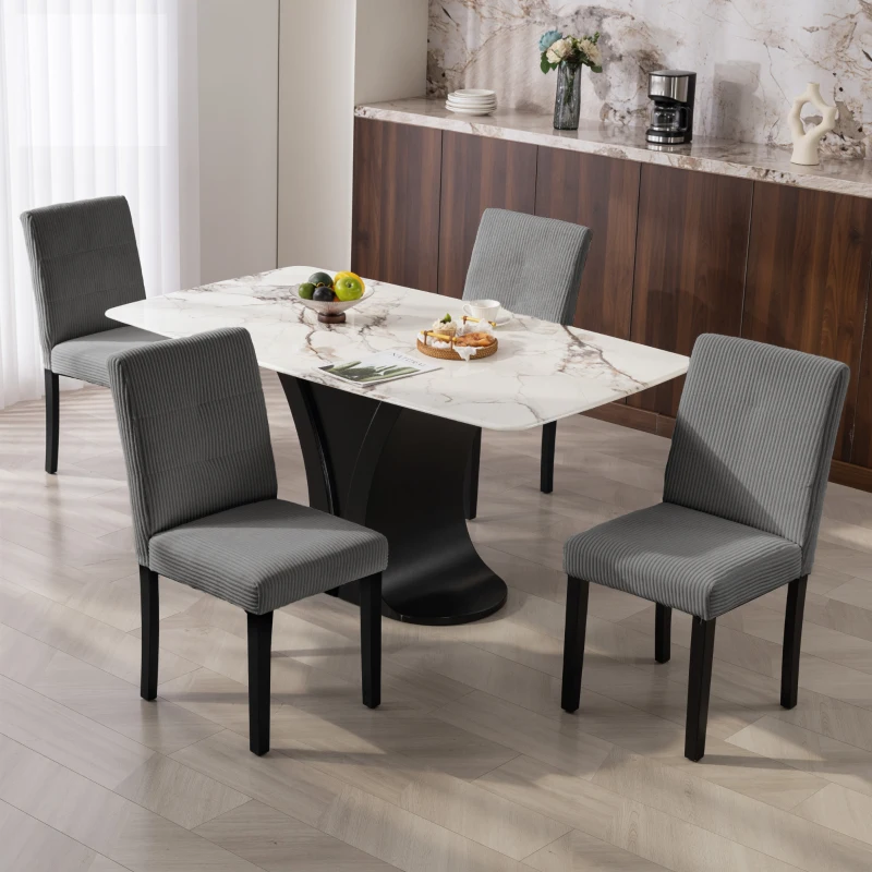 • Textured Corduroy Elegance: Wrapped in soft and cosy corduroy fabric, this four-piece kitchen chair set adds a touch of retro charm to your space. The natural wood-colour legs create a classic look that beautifully complements modern home decor
