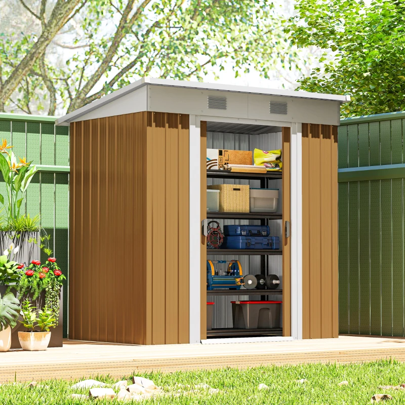 • Great Ventilation: Our metal shed features two vents for a cool and airy interior. A sloped roof offers extra storage capacity and prevents rainwater accumulation.
